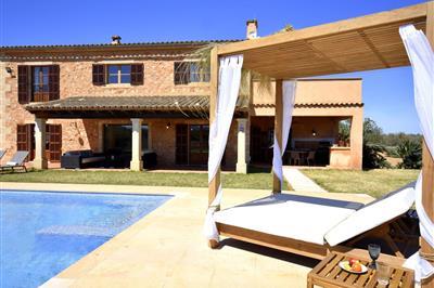 44396 Reina de la Isla Die Finca Reina de la Isla, in der Nähe von Felanitx, ist ideal für 8 Personen plus ein Baby. Sie bietet eine rustikale und moderne Einrichtung, 4 Schlafzimmer, 4 Bäder, Klimaanlage, Fußbodenheizung, privaten Pool, Garten, Tischtennis
