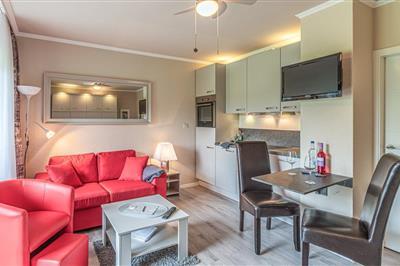3,5Diese gemütliche 1-Raum Ferienwohnung in Friedrichskoog an der Nordsee für 2 Personen ist im Erdgeschoss des Apartmentgebäudes Helmsand direkt am Deich. Die Wohnung verfügt über eine gemütliche Wohnküche mit einem Schrankbett. Dort versteckt sich ein