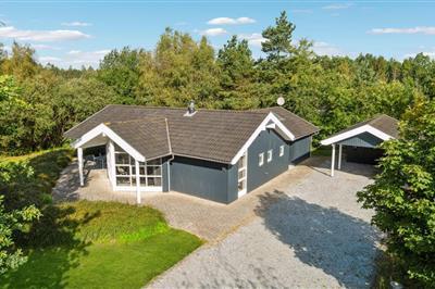 Hübsches Ferienhaus in ruhiger, landschaftlich ansprechender Gegend bei Fuglslev, etwa 8 km von Ebeltoft entfernt. Das Ferienhaus liegt auf einem großen und absolut ungestörten Grundstück, das von hohen Bäumen umgeben ist. Die Innenräume des Hauses sind hell,
