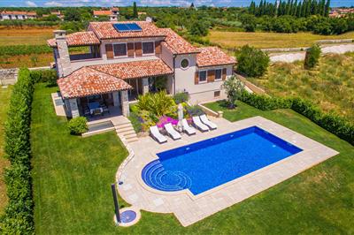 Die schöne Villa Campagna trägt Ihren Namen mit Recht. Diese luxuriöse Villa befindet sich in dem kleinen Dorf Galizana in der Nähe der Stadt Pula und ist eine wunderschöne Mischung aus modernem und traditionellem Stil eingerichtet, umgeben von einer