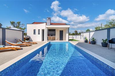 5,0Modernes, luxuriöses Ferienhaus mit Pool nordwestlich von Zadar. Freuen Sie sich auf einen unvergesslichen und großartigen Aufenthalt in dieser stilvoll und komplett eingerichteten Unterkunft. Hier wird es Ihnen an nichts fehlen. Die helle und moderne