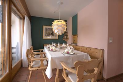 4,8"Chesa Maurus A5", 3-Zimmer-Wohnung 100 m2 im 1. Stock. Geräumig, gemütlich eingerichtet: offenes Wohn-/Esszimmer mit offenem Kamin, Esstisch und TV (Flachbildschirm). Ausgang zum Balkon. 1 grosses Doppelzimmer mit 1 Doppelbett (1 x 170 cm, Länge 200 cm).