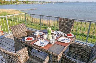 5,0Von der Terrasse dieser luxuriösen Ferienwohnung im OstseeResort Olpenitz aus kann der Blick über die breite Schleimündung bis hin zur Ostsee schweifen. Die Wohnung erstreckt sich über zwei Etagen (1.+ 2.OG) und bietet von allen Räumen aus tolle Ausblicke.