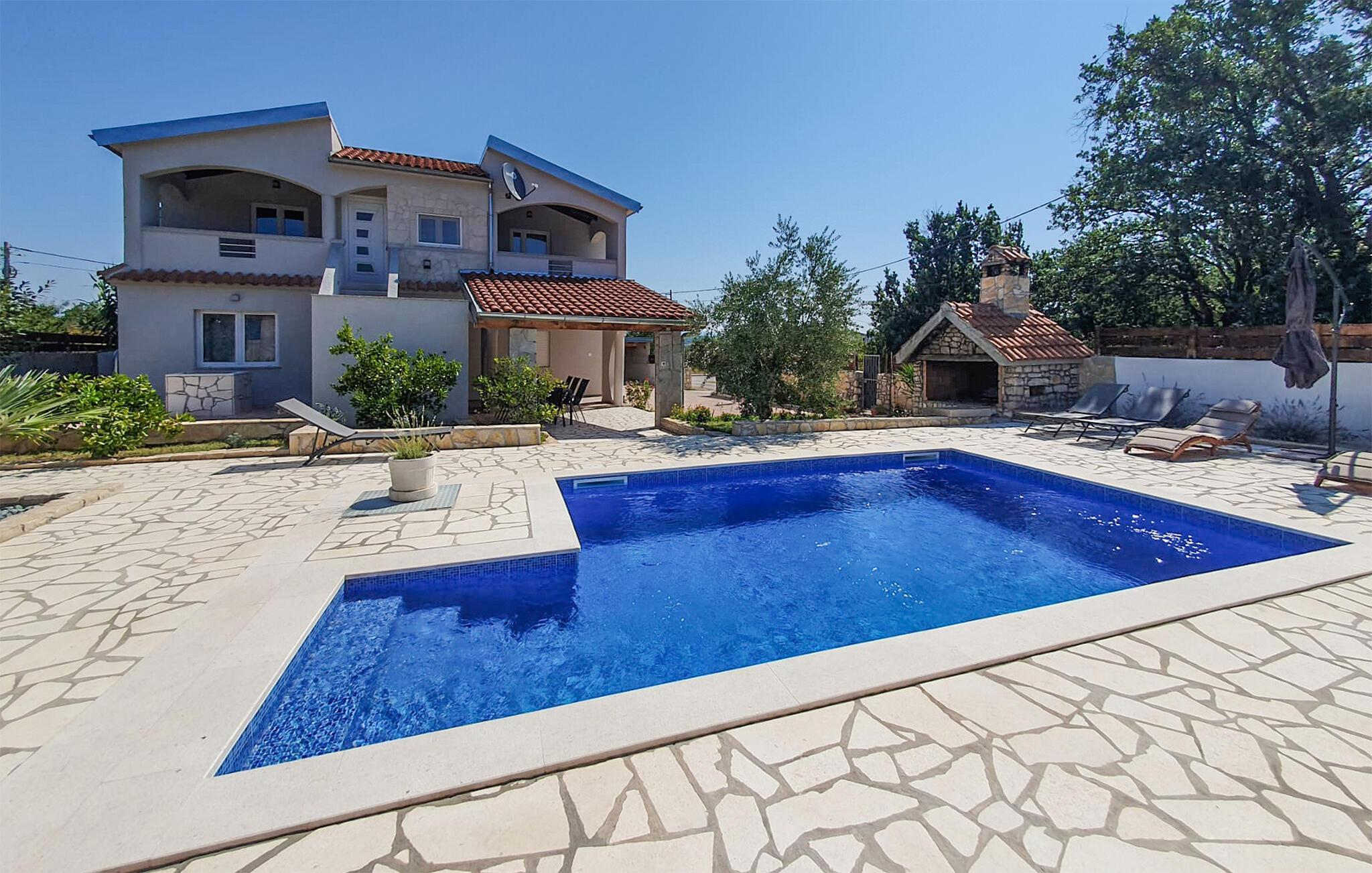 5,0Schöne Ferien in Dalmatiens Landschaft. Etwas südlich von Zadar auf einem weitläufigen Grundstück von über 2000 Quadratmetern, wohnen Sie in dieser einladenden Unterkunft in ruhiger Lage. Für die Kinder stehen Trampolin und Schaukel bereit. Ob Grillen im