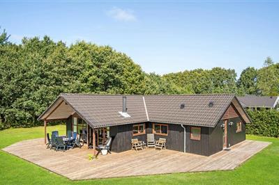 4,3Beste Möglichkeiten für vergnügte und erholsame Urlaubstage bietet Ihnen dieses reizvolle Ferienhaus am Kvie Sø. Das Urlaubsdomizil enthält unter anderem eine Sauna und einen großen Aktivitätsraum im Hausinneren sowie ein üppig grünes Grundstück, auf dem