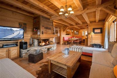 4,0"Chalet Lièvre Blanc", 8-Zimmer-Chalet 300 m2 auf 3 Stockwerken. Geschmackvoll und mit viel Holz eingerichtet: unteres Geschoss: 2 Zimmer, jedes Zimmer mit 2 Betten (90 cm, Länge 190 cm), Bad. Ausgang zum Balkon. Obergeschoss: Wohn-/Esszimmer mit offenem