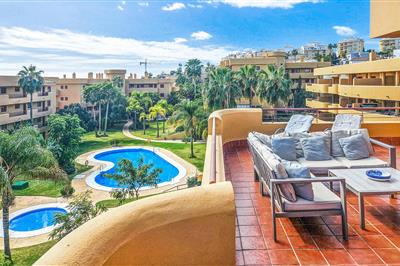 Schöne, gut ausgestattete Penthousewohnung mit 2 Schlafzimmern und 2 Badezimmern. Von der schönen Terrasse haben Sie einen tollen Blick auf das Meer. Zwischen Fuengirola und Marbella gelegen, befindet sie sich in einer fantastischen Gegend mit schönem Garten,