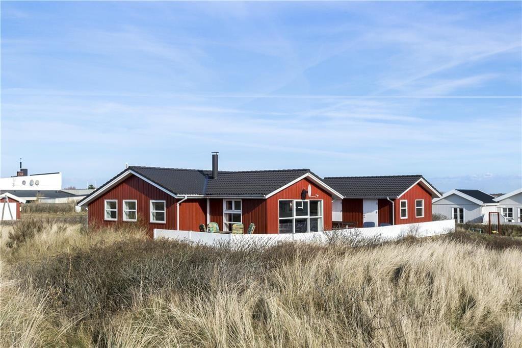 5,0Dieses schöne, neue Sommerhaus liegt auf einem 1210 m2 großen Naturgrundstück mit Aussicht auf die Heide, nicht weit vom Strand in Lakolk entfernt. Zum Haus gehört eine große, offene Terrasse mit einer kleinen Außenküche mit kalt Wasser sowie eine überdachte