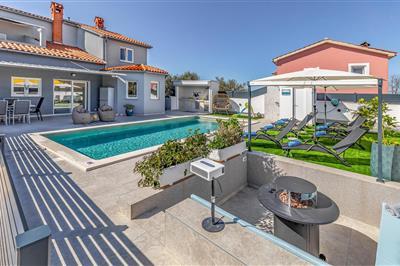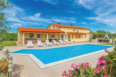 4,3Im kleinen Dorf Radeki Glavica in der Nähe von Pula befindet sich dieses einladende Ferienhaus mit großem Pool, Whirlpool im Freien, Sauna und zahlreichen Unterhaltungsmöglichkeiten. Aufgrund seiner außergewöhnlichen Größe und Ausstattung ist dieses