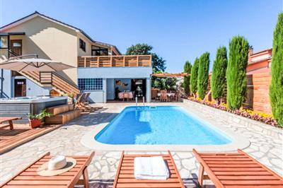 5,0Dieses traumhafte Ferienhaus mit Pool befindet sich in einem kleinem Ort Radeki Polje, im Landesinneren von Istrien. Geräumig und komfortabel eingerichtet, ist es die ideale Wahl für unterhaltsame Stunden mit Freunden und der Familie. Verweilen Sie auf der