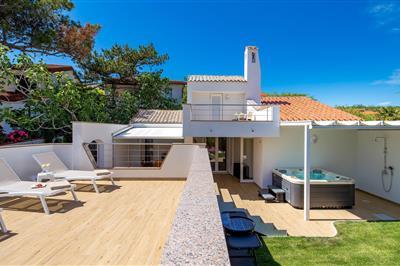 5,04-Zimmer-Villa 200 m2 auf 2 Stockwerken. Modern und geschmackvoll eingerichtet: Wohn-/Esszimmer 40 m2 mit Sat-TV und Klimaanlage. Ausgang zur Terrasse. 1 Zimmer mit 1 Diwanbett (80 cm, Länge 200 cm), 1 franz. Bett (200 cm, Länge 210 cm), Bad/Dusche/WC und