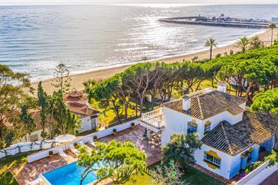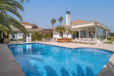 Diese fantastische Ferienvilla in Cabopino, Marbella, nur 50 m vom Strand entfernt, befindet sich in einer der besten Gegenden der Costa del Sol und zweifellos von Marbella. Das Haus liegt nur 5 Gehminuten von der fantastischen und belebten „Marina de