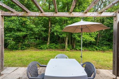 4,03-Zimmer-Reihenhaus, 2 Etagen, ca. 49 m2. Wohn-/Schlafraum mit Doppelausziehbett, Essplatz und Küchenzeile (4 Ceranfelder, Mikrowelle, Geschirrspüler, Kühl-/Gefrierkombination, Kaffeemaschine, Toaster). Dusche. Sep. WC. Obergeschoss: Schlafzimmer mit franz.