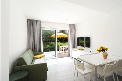 3,7"Graziella", 3-Zimmer-Villa 200 m2 auf 2 Stockwerken, im Erdgeschoss. Geräumig und hell, rustikal und gemütlich eingerichtet: Wohn-/Esszimmer mit Esstisch und TV. Ausgang zum Garten, zur Terrasse. 1 Doppelzimmer. Ausgang zur Terrasse. Grosse Küche (Backofen,