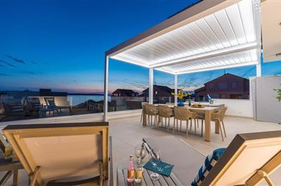 Gönnen Sie sich einen luxuriösen Aufenthalt in diesem Penthouse in Mandre, einem Ort, der für seine malerische Küstenlinie bekannt ist. Entfliehen Sie Ihrem hektischen Alltag und entspannen sich befreundeten Paaren oder Ihrer Familie in dieser schönen und