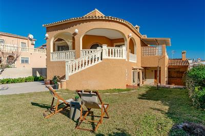 3,7"Golf y Playa", 4-Zimmer-Haus 95 m2 auf 2 Stockwerken. Geräumig und hell, schön und gemütlich eingerichtet: Wohn-/Esszimmer mit Digital-TV. Ausgang zur Terrasse, zum Schwimmbad. 1 Zimmer mit 1 franz. Bett (135 cm, Länge 190 cm), Klimaanlage und