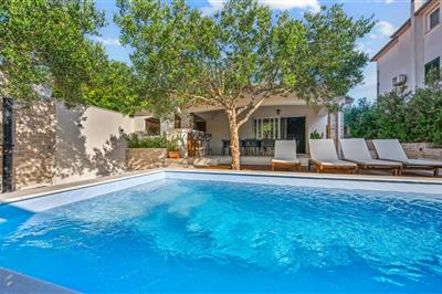 5,0Dieses geschmackvoll eingerichtete Ferienhaus mit Pool besteht aus zwei Etagen, die mit Außentreppen verbunden sind. Vor dem Haus sind der Swimmingpool, Grill und Sitzbereich für gesellige Stunden. Murter ist eine herrliche Insel, die mit einer Brücke zum