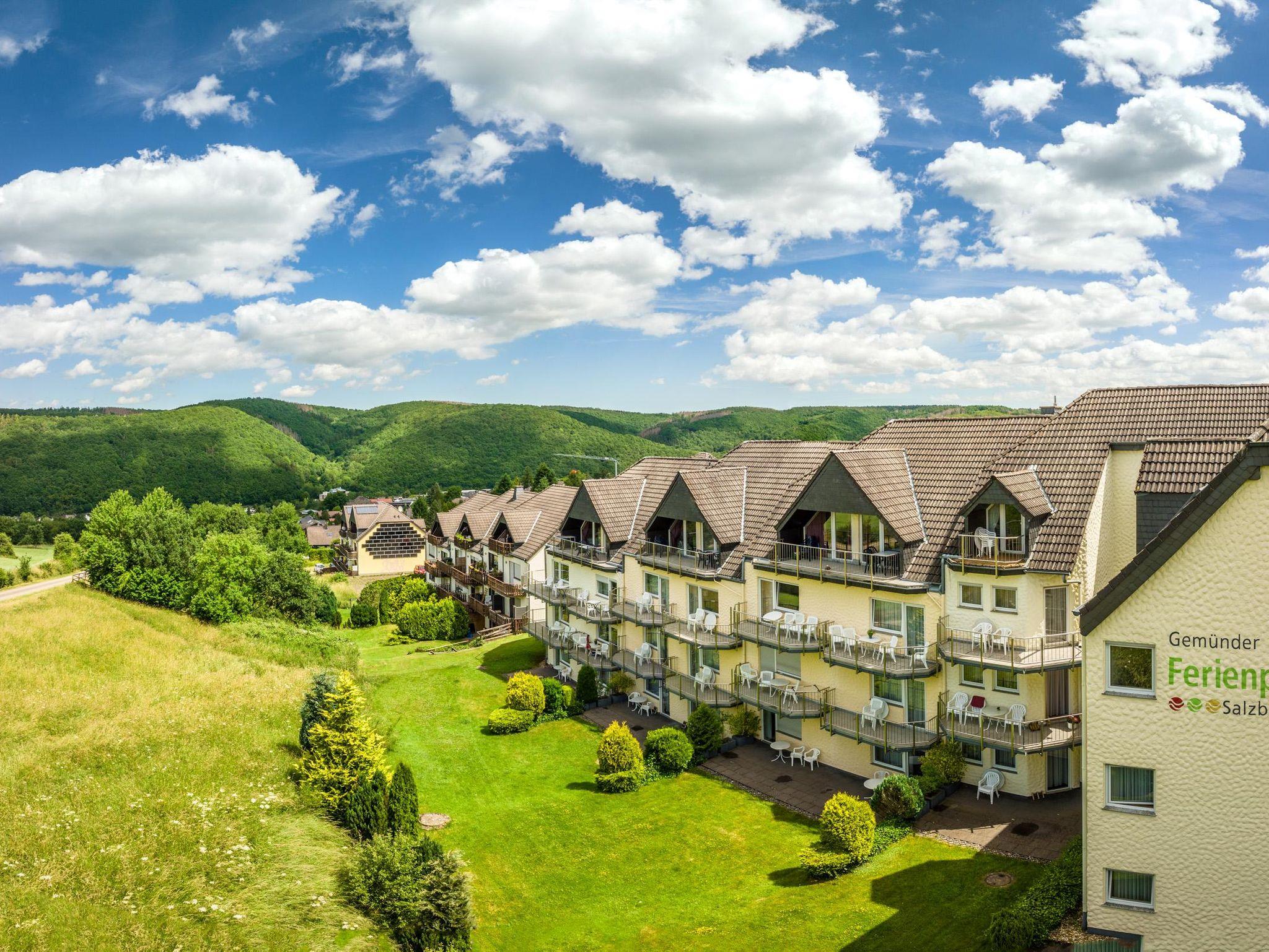 4,6Gemünder Ferienpark Salzberg, 4-Bett-Apartment Eifelgold - Kurzaufenthalt Gastgeber Nationalpark EIFEL Es war einmal ein Urlaubszuhause in der Eifel … … direkt am Nationalpark umrahmt von bewaldeten Hügeln, klaren Seen und schnuckligen Dörfern. Der Gemünder