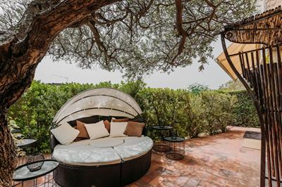 5,0"Domus Ema", 3-Zimmer-Villa. Komfortabel und gemütlich eingerichtet: Wohn-/Esszimmer mit offenem Kamin, Esstisch und TV. Ausgang zum Garten. 2 Doppelzimmer. Ausgang zur Terrasse. Küche (Backofen, Geschirrspüler, 4 Induktionskochplatten, Wasserkocher).