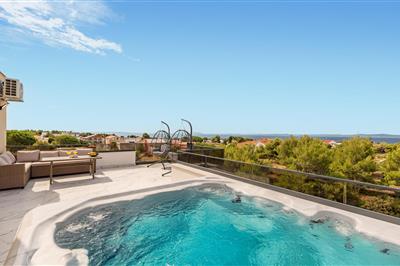 Ferienhaus für 8 Gäste mit 70m² in Vir (298432) (Erdgeschoss und 1. Stock) Dieses luxuriös und modern ausgestattete Urlaubdomizil für 6 bis 8 Personen mit Swimmingpool und Panorama-Meerblick befindet sich in ruhiger Lage im Ortsteil Torovi der Insel Vir. Die