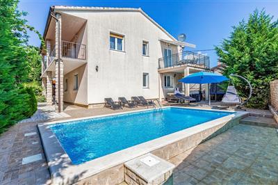 3,7In einer ruhigen Lage abseits des hektischen Stadtlebens liegt dieses Ferienhaus mit Pool. Es ist von viel Grün umgeben und verfügt über einen Blick aufs Meer und Inseln in der Bucht von Kvarner. Komfortabel eingerichtet, besteht das Haus aus einem großen
