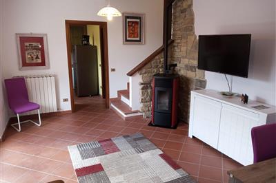 4,37-Zimmer-Haus 200 m2 auf 3 Stockwerken. Rustikal und antik eingerichtet: grosses Wohn-/Esszimmer mit 1 Schlafmöglichkeit (Länge 180 cm), TV. Ausgang zur Terrasse. Küche (Backofen, 4 Induktionskochplatten, Mikrowelle, Tiefkühler). Sep. WC. Obergeschoss: 2