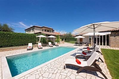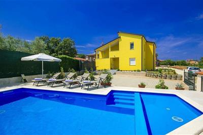 Im kleinen, ruhigen Dorf Plovanija, nahe der Grenze zwischen Slowenien und Kroatien, befindet sich dieses wunderschöne Ferienhaus mit Swimmingpool, das aus drei Apartments mit separaten Eingängen besteht. Jedes Apartment verfügt über eine Küche und ein