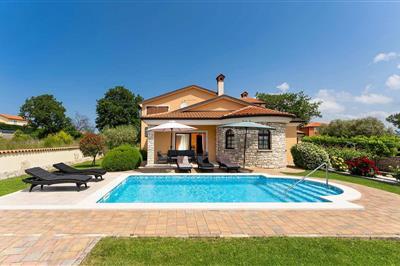 Villa Morena liegt im Ort Kastel in der Nähe von Umag und des schönen Strandes in Kanegra. Auf komplett umzäuntem und gepflegtem Grundstück stehen den Gästen ein Pool, Sonnenliegen, überdachte Terrasse mit Kamin, Sitzgarnitur und mehrere Parkplätze zur