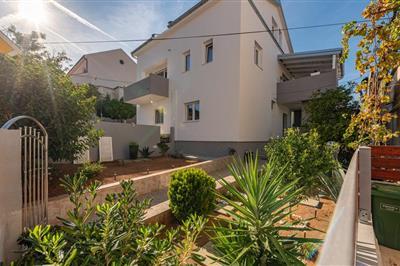 Dieses geräumige und in mediterranen Stil eingerichtete Ferienhaus besteht aus drei getrennten Wohneinheiten, die durch ein Treppenhaus verbunden sind. Die Terrassen bieten eine herrliche Aussicht auf das Meer, die Stadt Zadar und die Insel Galovac. Der