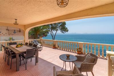 Erleben Sie entspannte Urlaubstage in diesem stilvollen Ferienhaus mit herrlichem Meerblick und Pool. Freuen Sie sich auf einen wunderschönen Mallorca-Aufenthalt und erholsame Tage am Meer. Im Inneren empfängt Sie Ihr Ferienhaus mit einer modernen und