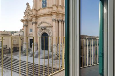 0,0Das Appartement liegt mitten im historischen Zentrum der UNESCO Weltkulturerbe Stadt Ragusa Ibla im Val di Noto in Siziliens Südosten. Die Unterkunft befindet sich im zweiten Stock eines Adelspalastes genau gegenüber dem berühmten Dom San Giorgio, dem