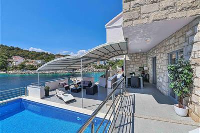 5,0Nur ca. 60 m vom Meer entfernt befindet sich dieses luxuriöse Haus mit Pool. Das Haus verfügt über 5 Ferienwohnungen mit Meerblick. Jede Wohneinheit besteht aus 2 geräumigen Zimmern mit eigenem Bad und zusätzlicher Toilette, Küche, Esszimmer, Wohnzimmer und