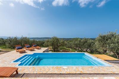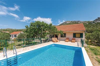 4,0Dieses funktionale Ferienhaus mit Pool befindet sich im Ort Donje Polje, nahe der Stadt Šibenik, und ist für Paare oder Familien geeignet. Es liegt auf einem umzäunten Grundstück, das von Weinreben, Oliven- und Feigenbäumen bewachsen ist. Der Wohnraum besteht