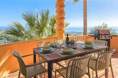 5,0Dieses luxuriöse und sonnige Ferienapartment mit 3 Schlafzimmern befindet sich im Komplex „El Portón“ in Sitio de Calahonda und bietet vom Wohn- und Hauptschlafzimmer aus einen atemberaubenden Blick über die Umgebung bis zum Mittelmeer. Der Komplex verfügt