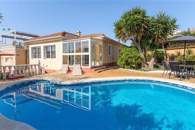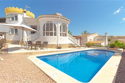 4,0Dieses mit viel Geschmack renovierte Ferienhaus mit Pool in Ciudad Quesada, verfügt über großzügige Schlafzimmer mit Massageduschen in den jeweiligen Bädern. Von der modernen Küche dieses ebenerdigen Hauses gelangen Sie über den Wintergarten direkt zur