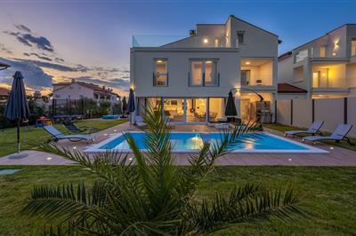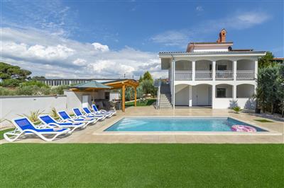 5,0Nur wenige Kilometer von Porec entfernt liegt dieses Ferienhaus. Es ist komfortabel und ermöglicht Ihnen einen sehr angenehmen Aufenthalt. Im Erdgeschoss befinden sich die Küche und die überdachte Sommerküche, die zum beheizten Pool führt. Im ersten Stockwerk