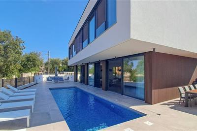 Diese moderne Villa liegt in einer natürlichen Umgebung mit einem unverwechselbaren istrischen Charme und wird selbst die anspruchsvollsten Wünsche von Liebhabern moderner Architektur erfüllen. Vier große Schlafzimmer mit viel Sonnenlicht sind mit