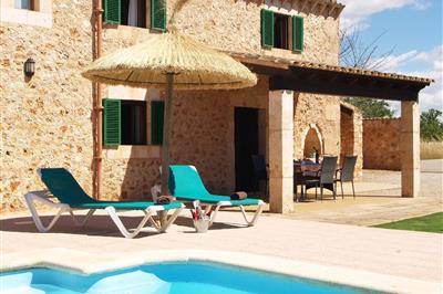 4,4Casa Rural Sa Sorda - Ferienhaus Mit Privatem Pool Haus: Starten Sie Ihren Urlaubstag mit einem ausgiebigen Bad im 6 x 4 m großen Pool, der hinter dem Haus liegt. Er wird mit Chlor gereinigt und ist zwischen 1 m und 1,6 m tief. Auf einer der 4 Sonnenliegen