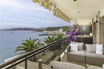 4,04-Zimmer-Attikawohnung 84 m2. Geräumig und hell, komfortabel und geschmackvoll eingerichtet: Wohn-/Esszimmer mit Esstisch, Digital-TV, Klimaanlage und Warmluftheizung. Ausgang zur Terrasse. 1 Zimmer mit 2 Betten (90 cm). 1 Zimmer mit 2 Betten (80 cm). 1