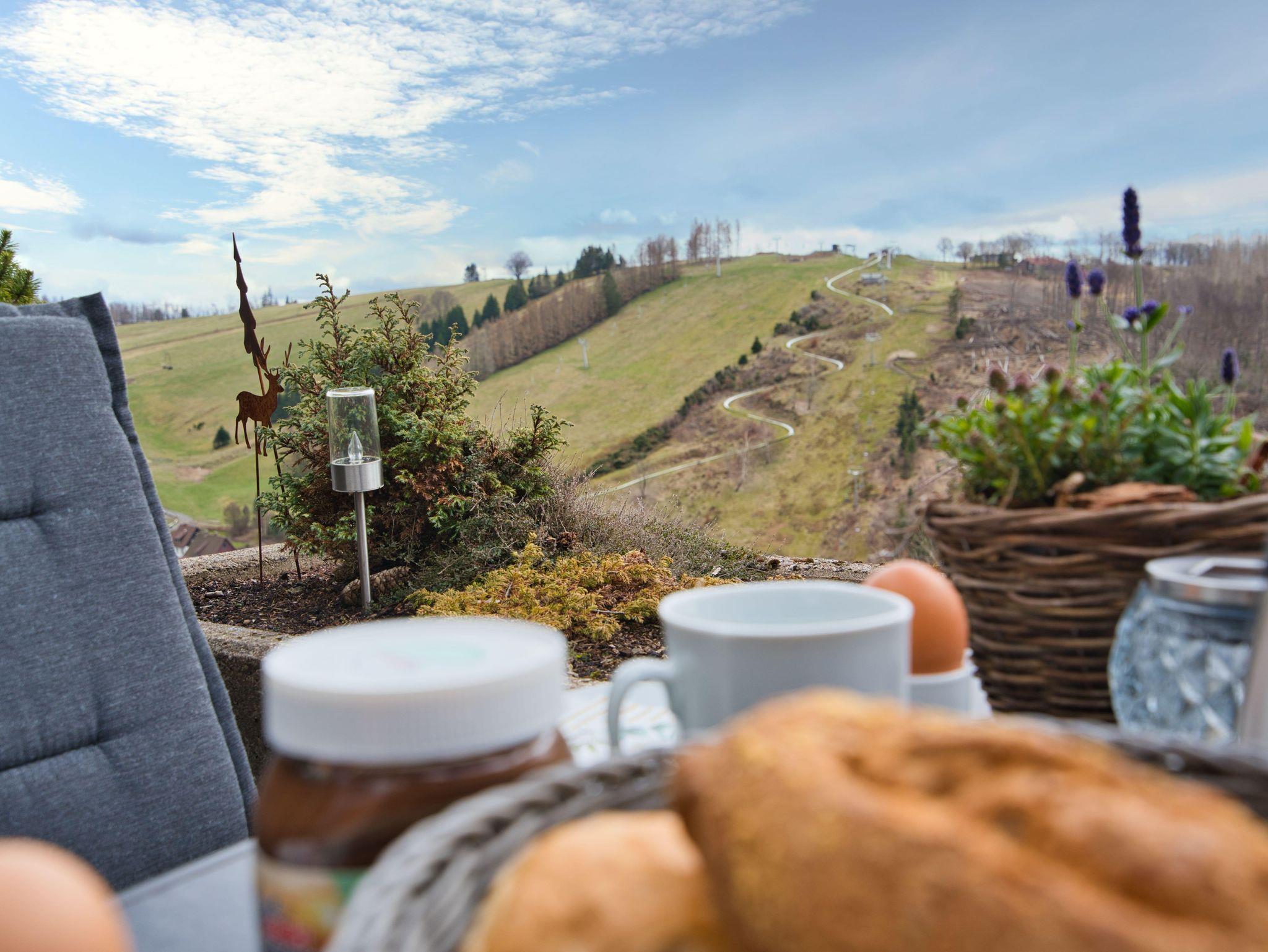 Haus Panorama Sankt Andreasberg, Wohnung 5 Das Haus Panorama in Sankt Andreasberg im Oberharz macht seinem Namen alle Ehre: In ruhiger Hanglage genießen Gäste einen weiten Blick über Wiesen, Wälder und die eindrucksvolle Berglandschaft des Oberharz. Die