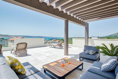 Genießen Sie eine erholsame Auszeit in diesem Luxus-Ferienhaus nahe Zadar. Ihr großzügiges Ferienhaus liegt in Seline, einem idyllischen Ort am Fuße des majestätischen Velebit-Gebirges. Beginnen Sie den Tag entspannt mit einem Familienfrühstück am schönen
