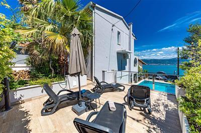 Mit Blick auf das Meer und das Festland empfängt Sie dieses komfortable Ferienhaus mit Pool. Genießen Sie Ihren Urlaub in ruhiger Lage von Slatine, auf der Insel Ciovo, und verbringen mit Ihrer Großfamilie oder Freunden eine großartige Zeit in diesem