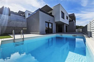 5,07-Zimmer-Villa 300 m2. Schön und modern eingerichtet: Wohn-/Esszimmer 60 m2 mit Panoramafenster mit Sat-TV (Flachbildschirm), Klimaanlage. Ausgang zur Terrasse. Offene Küche (Backofen, Geschirrspüler, 4 Glaskeramikplatten, Mikrowelle, Tiefkühler, elektrische