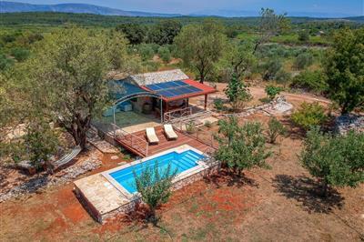 4,0Das Haus befindet sich in ländlicher Umgebung im Ort Stari Grad mitten auf der Insel Hvar an einer Bucht, umgeben von Weinbergen und Kiefern. Vor dem Haus steht die 30m² große und überdachte Terrasse mit Gartenmöbeln und Grill zur Verfügung. Im Garten