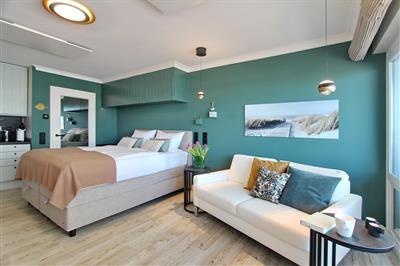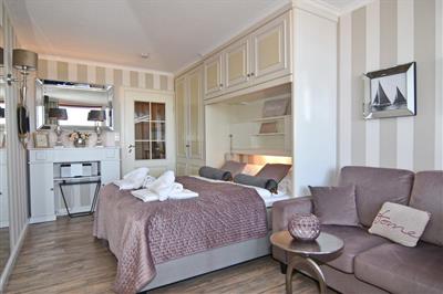 Ferienwohnung/App. für 2 Gäste mit 25m² in Westerland (308264) (4. Stock) Exklusives 1-Zimmer-Appartement mit Westbalkon und Blicke auf die Nordsee. Ca. 25m², Nichtraucher,[nbsp][nbsp]4.OG im Haus Wiking. Wohn-/Schlafraum mit Boxspringbett (2x80x200 ) und