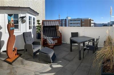 Ferienwohnung/App. für 3 Gäste mit 60m² in Westerland (306046) (5. Stock) Traumhafter Meerblick mit großer Dachterrasse und Loggia! Hochwertige 2,5-Zimmer-Nichtraucher-Ferienwohnung mit ca. 60 m² und geeignet für 3 Personen. Sie ist hochwertig ausgestattet