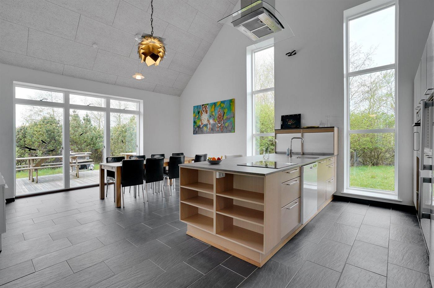 4,7In diesem Haus wurde auf sowohl die praktische Einrichtung als auch den visuellen Eindruck Wert gelegt. Von der Wohnküche mit Kamin, die im Herzen des Hauses liegt, haben Sie Aussicht zum Poolraum mit Gegenstromanlage und Wasserrutsche. Eine Tür führt vom