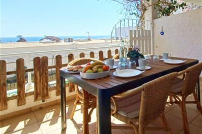 3,3"Puerto Nuevo", 3-Zimmer-Wohnung 70 m2. Modern und gemütlich eingerichtet: Wohn-/Esszimmer mit Esstisch und Digital-TV. Ausgang zum Gartensitzplatz. 1 Doppelzimmer mit 1 franz. Bett (160 cm, Länge 200 cm), Bad/Bidet/WC. 1 Kinderzimmer mit 1 Ausziehbett (2