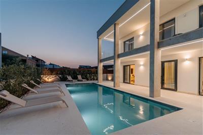 5,0Diese geräumige XXL Doppelhaushälfte befindet sich in dem kleinen Küstenort Turanj. Das wunderschön eingerichtete Interieur bietet 8 klimatisierte Schlafzimmer mit 8 Bädern. Es gibt auch eine Gemeinschaftsküche und ein komfortables Wohnzimmer mit vielen