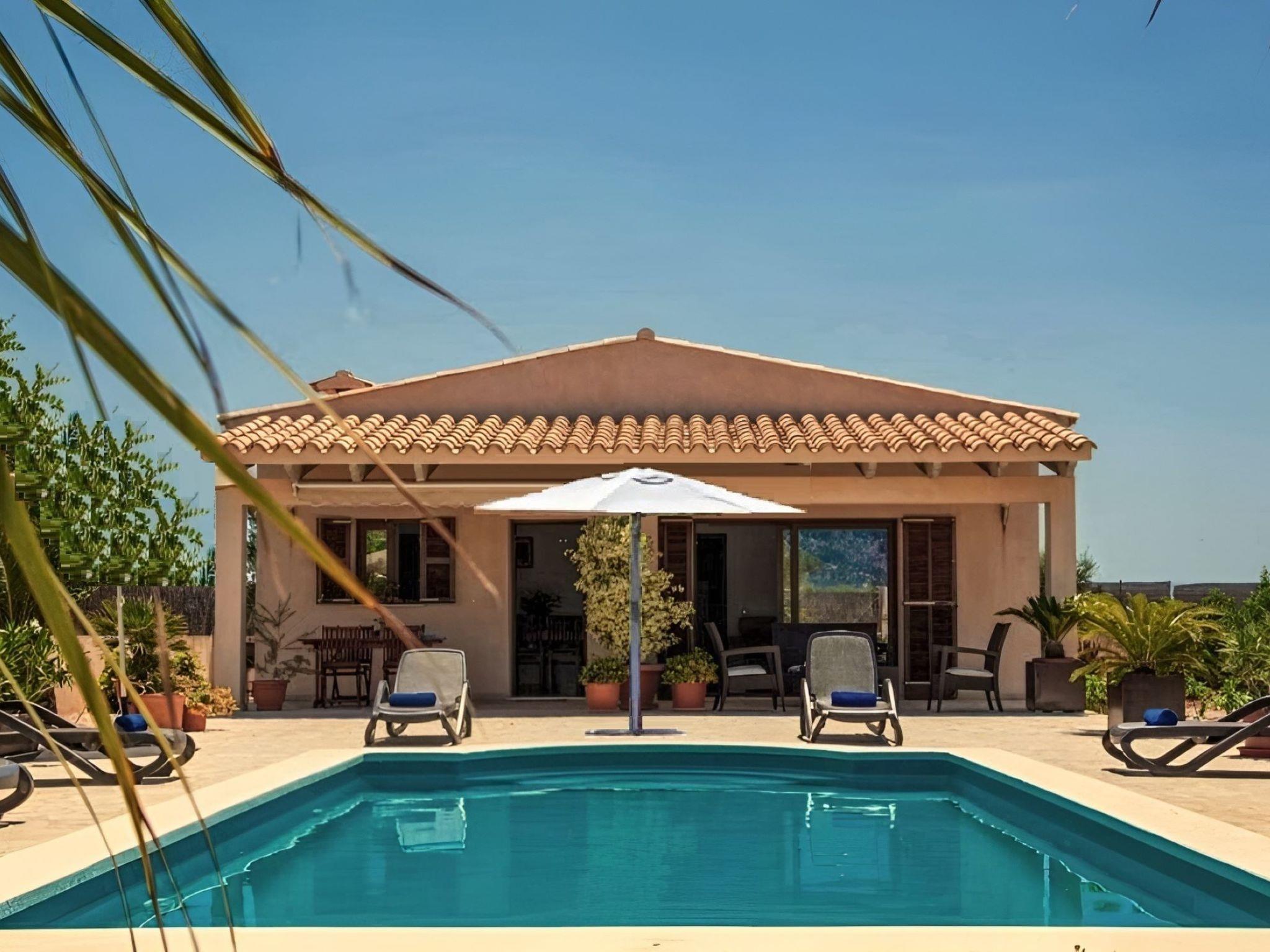 0,0Die moderne Finca mit großer teilüberdachter Terrasse und privatem Pool liegt auf einem komplett eingezäunten Grundstück im Norden der Insel zwischen den Dörfern Campanet und Sa Pobla. Das Haus bietet auf 120 m² Wohnfläche ebenerdig insgesamt drei